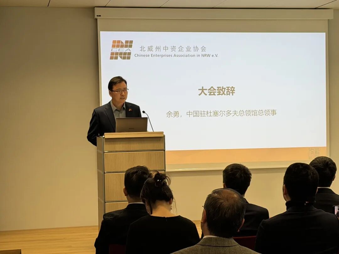 2026年4月15日,北威州中资企业协会年度会员大会在杜塞尔多夫召开,企业代表70余人参加。驻杜塞尔多夫总领事余勇出席并致辞。